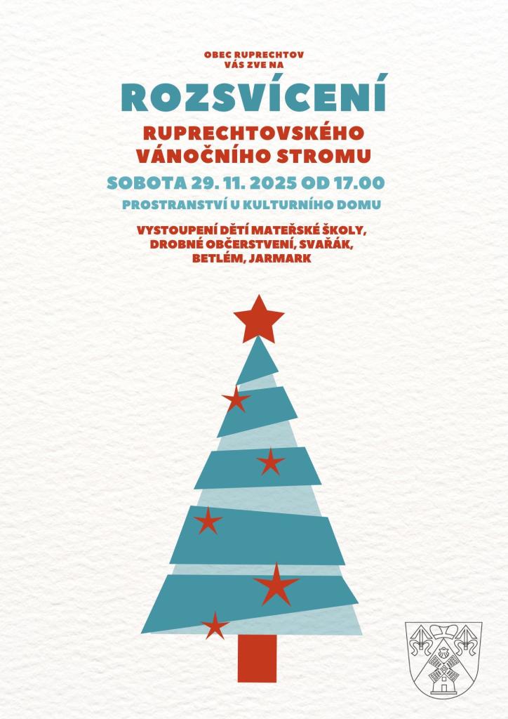 Obec Ruprechtov vás srdečně zve na slavnostní rozsvícení ruprechtovského vánočního stromu, které se uskuteční v sobotu 29. listopadu 2025 od 17:00 na prostranství u kulturního domu.